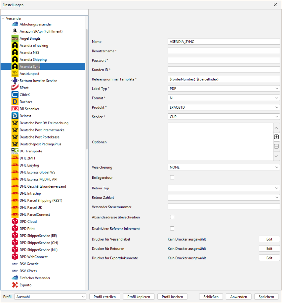 Seit Januar 2025 benötigen wir für interne Abrechnungszwecke eine weitere Konfiguration in BarcodeShipping für unsere Asendia-Kunden.