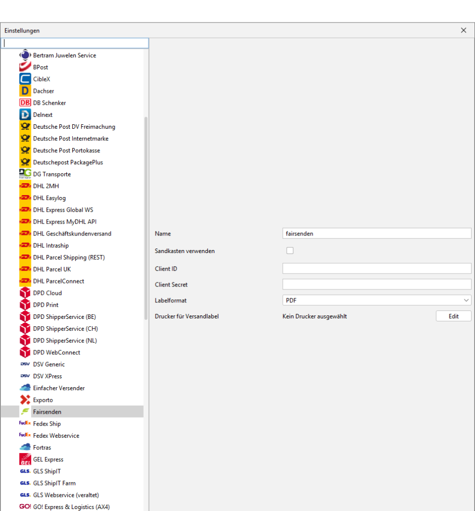 Konfiguriere über den „Edit“-Button den Drucker für Versandlabel.