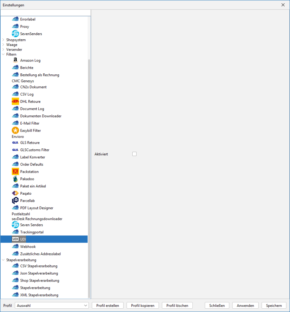 Aktiviere diese Checkbox, wenn du den UDI Filter aktivieren möchtest.