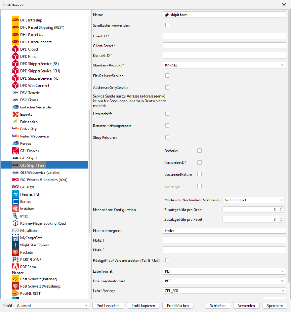 Secret = Client Secret (in BCS) - Kontaktiere nun deine:n GLS-Ansprechpartner*in um mitzuteilen, dass du GLS mit BarcodeShipping nutzen möchtest und Zugangsberechtigungen für die GLS ShipIT-Farm-API benötigst.