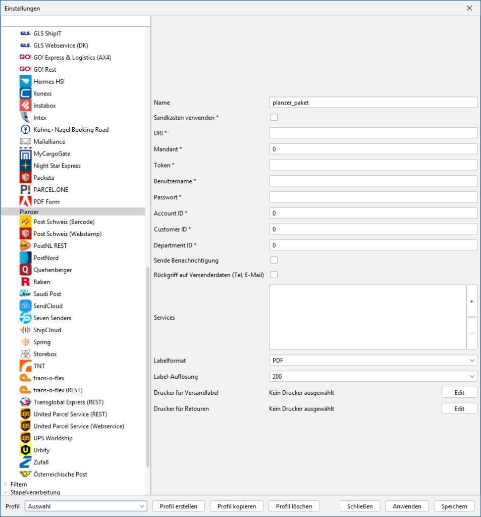 Trage hier deinen Mandanten-Namen ein, den du von Planzer erhältst.