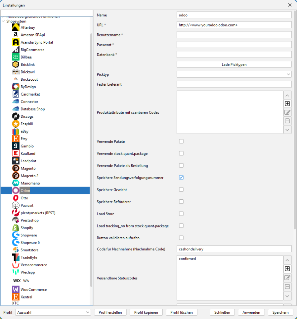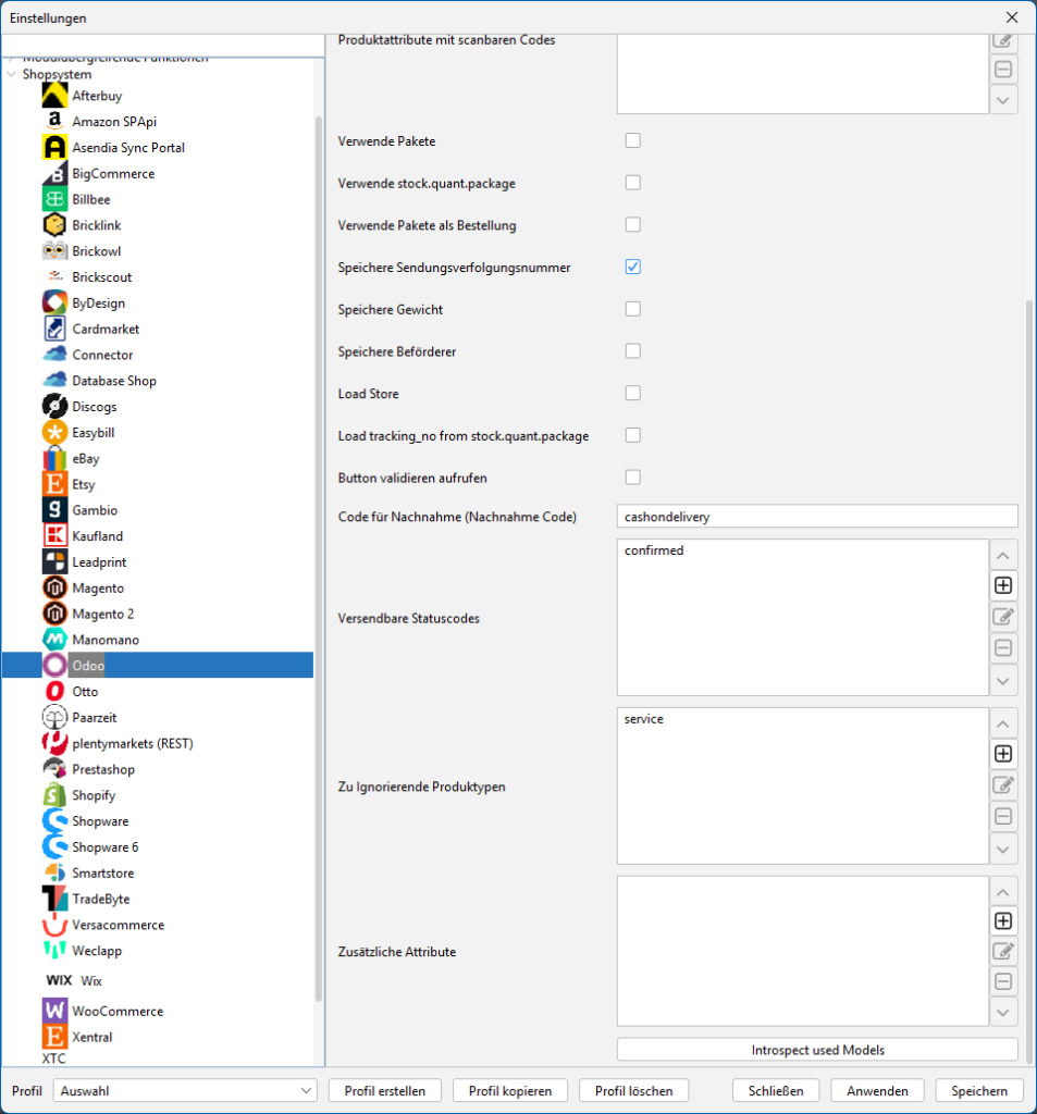 Verbinde dein aktuelles Profil mit dem gewünschten Shop auf dem Reiter „Allgemein“ unter dem Punkt „Standard Shop“. Danach wählst du im BCS das entsprechende Modul aus unserer Shopliste für weitere Konfigurationen.