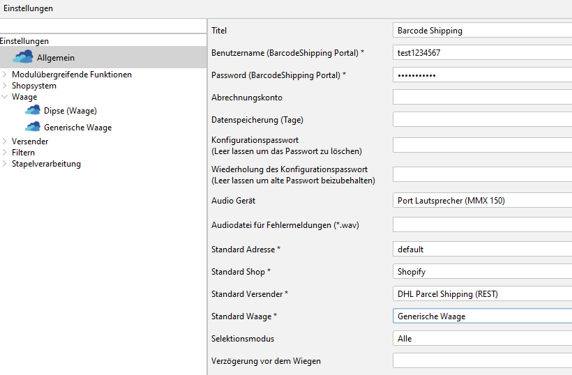 Starte anschließend BarcodeShipping, um die Waage dort einzubinden.
